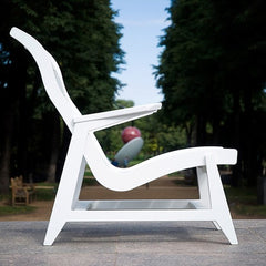 In collaboration with the leader in responsible lollygagging, Rapson-Inc. is proud to offer outdoor versions of the Rapson Greenbelt® Line in durable, beautiful, colorful 100% recycled plastic from Loll Designs. Like the indoor Greenbelt Lounge, the curved seat of this chair and soaring, cantilevered arms are both classic and comfortable.